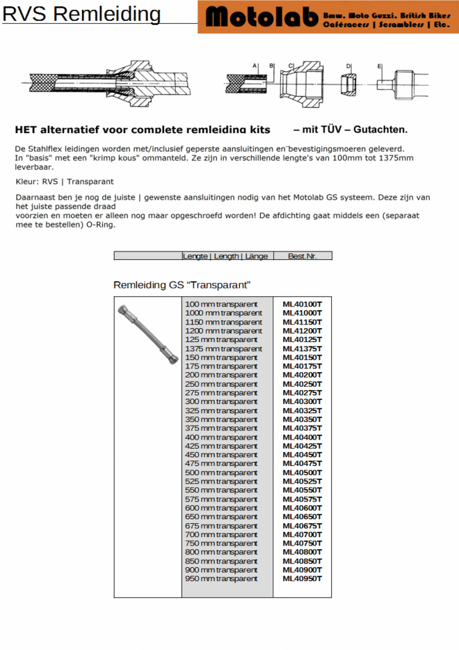 Motolab GS RVS remleiding in een fantastisch mooi en makkelijk "doe het zelf" systeem.